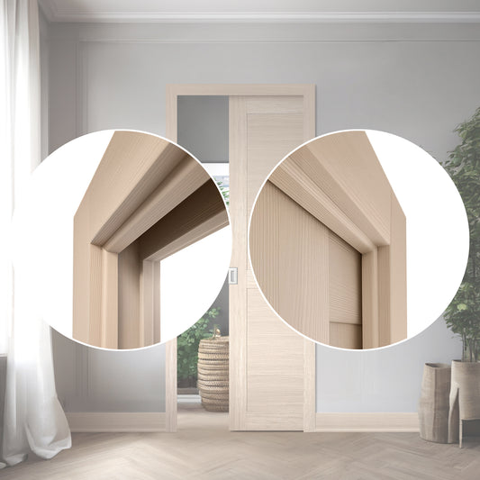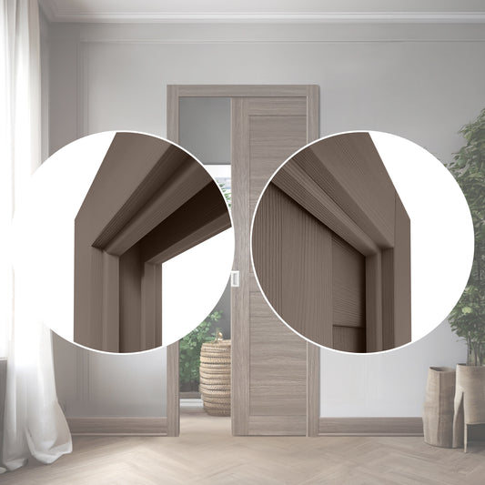 Idéal pour encadrer l’ouverture d’une porte coulissante, ce cadre s’harmonise parfaitement avec les portes qui disparaissent dans le mur. Il apporte une touche moderne et raffinée tout en optimisant l’espace disponible.